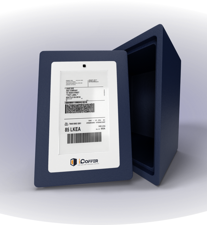 To mitigate the need for shipping labels and return labels, iCoffer features a built-in e-paper screen that automatically logs each new update that occurs to the shipment.